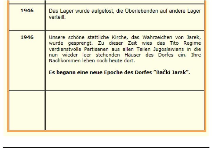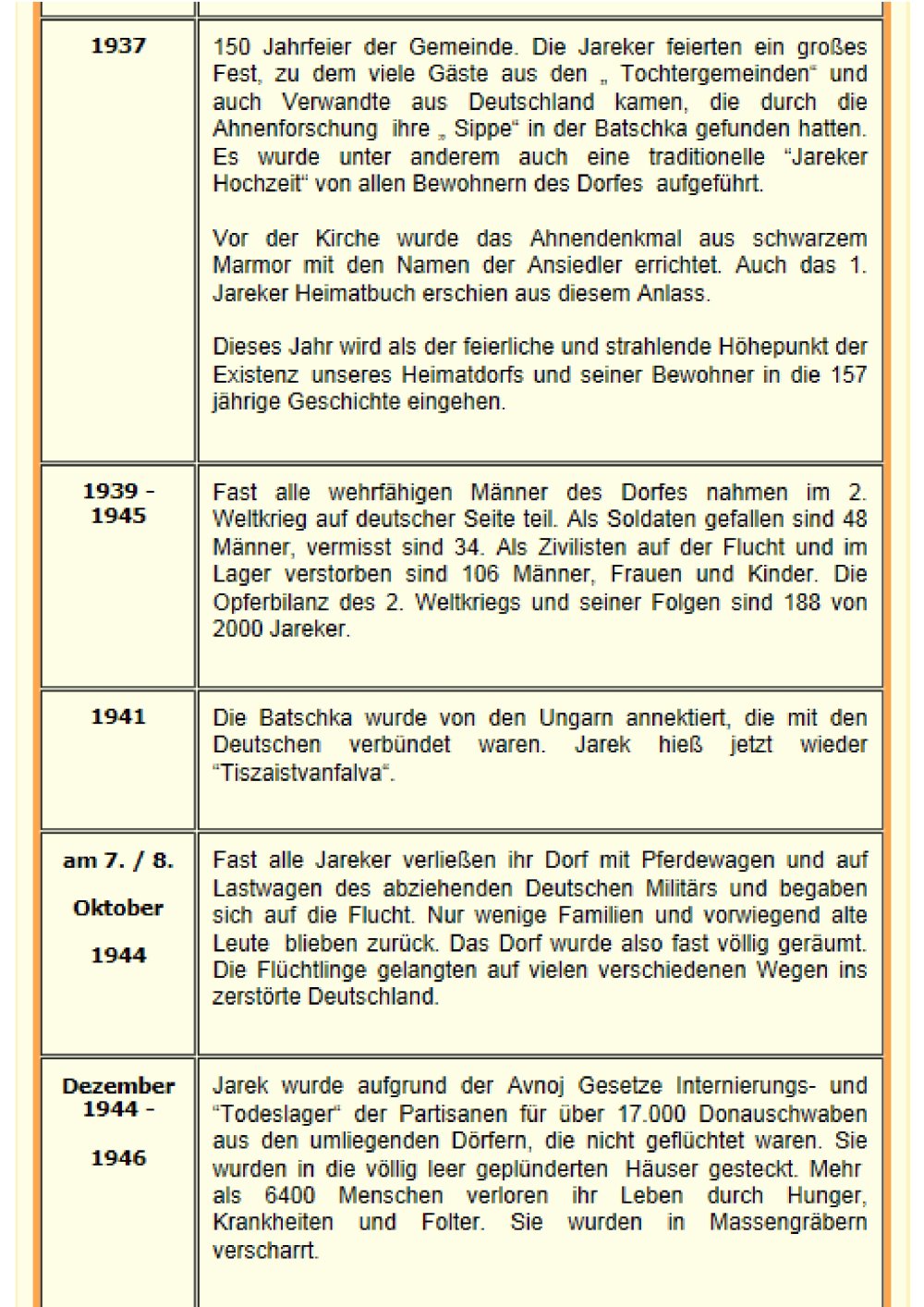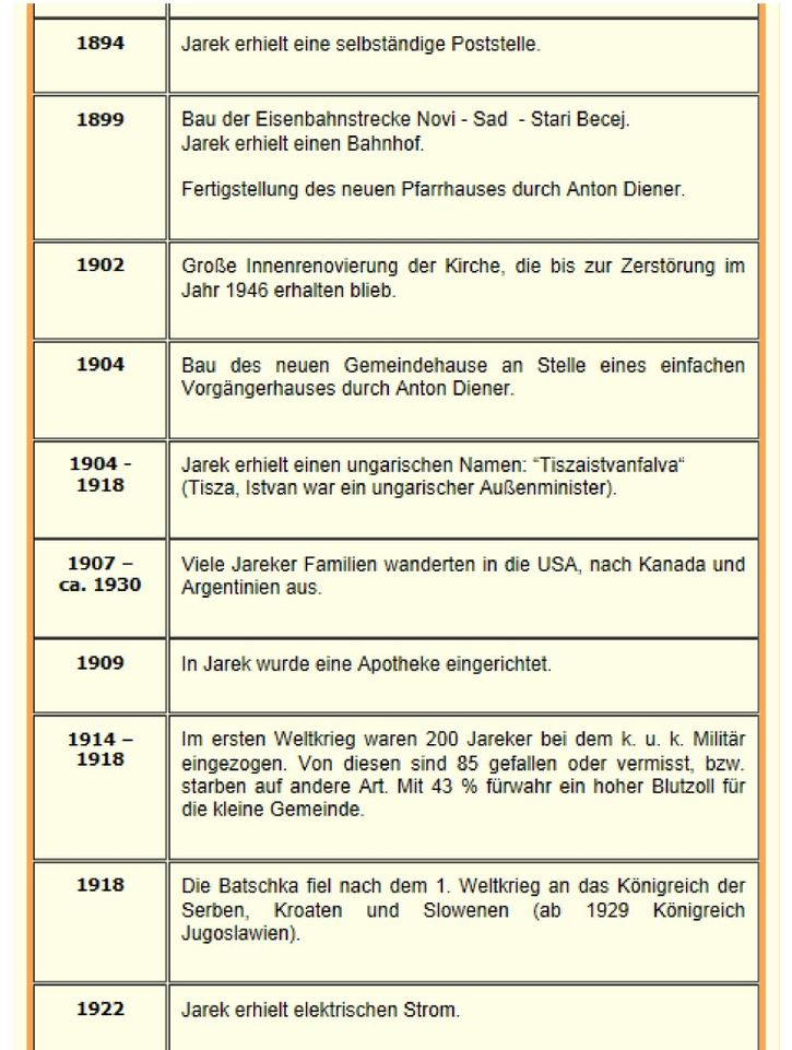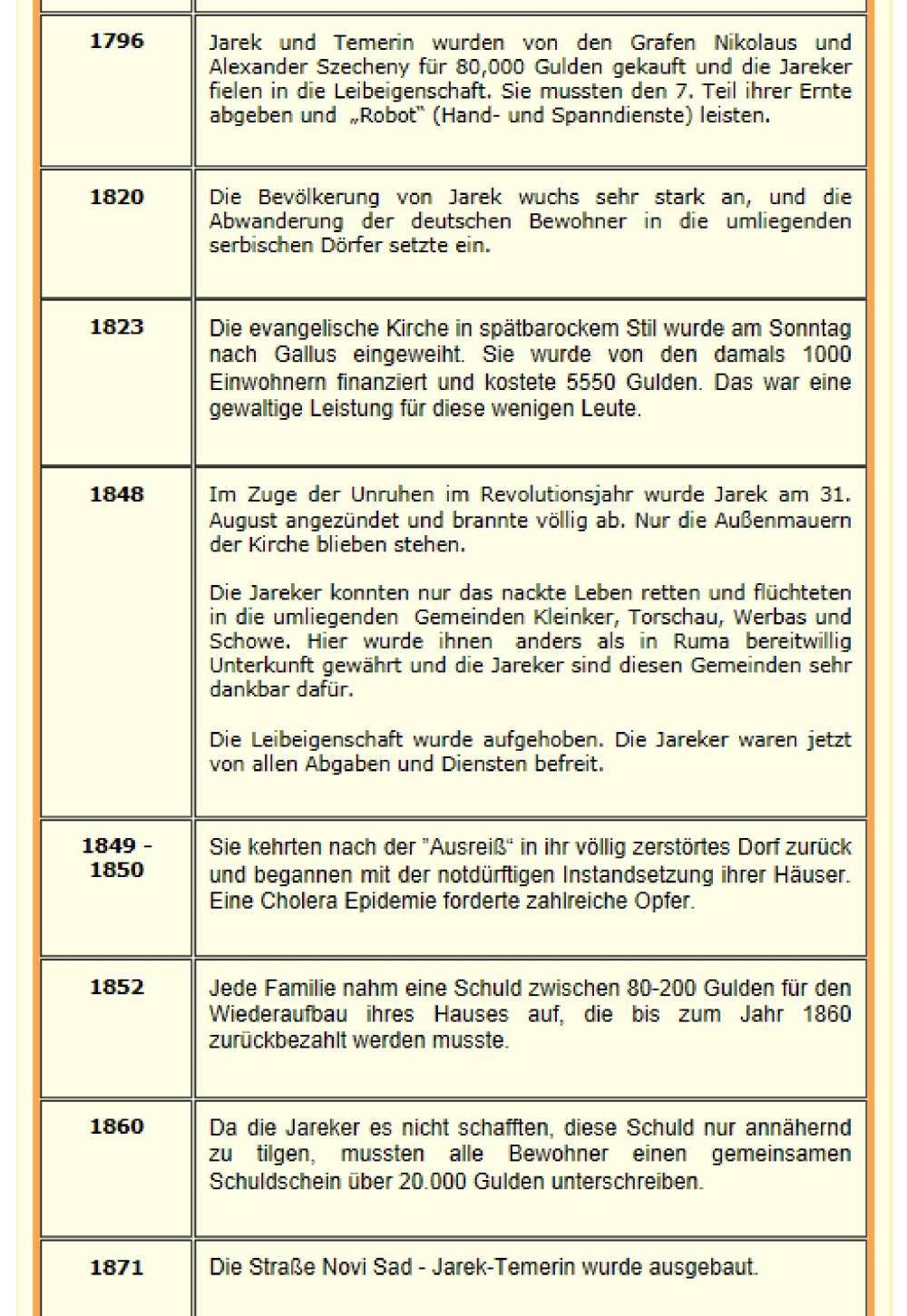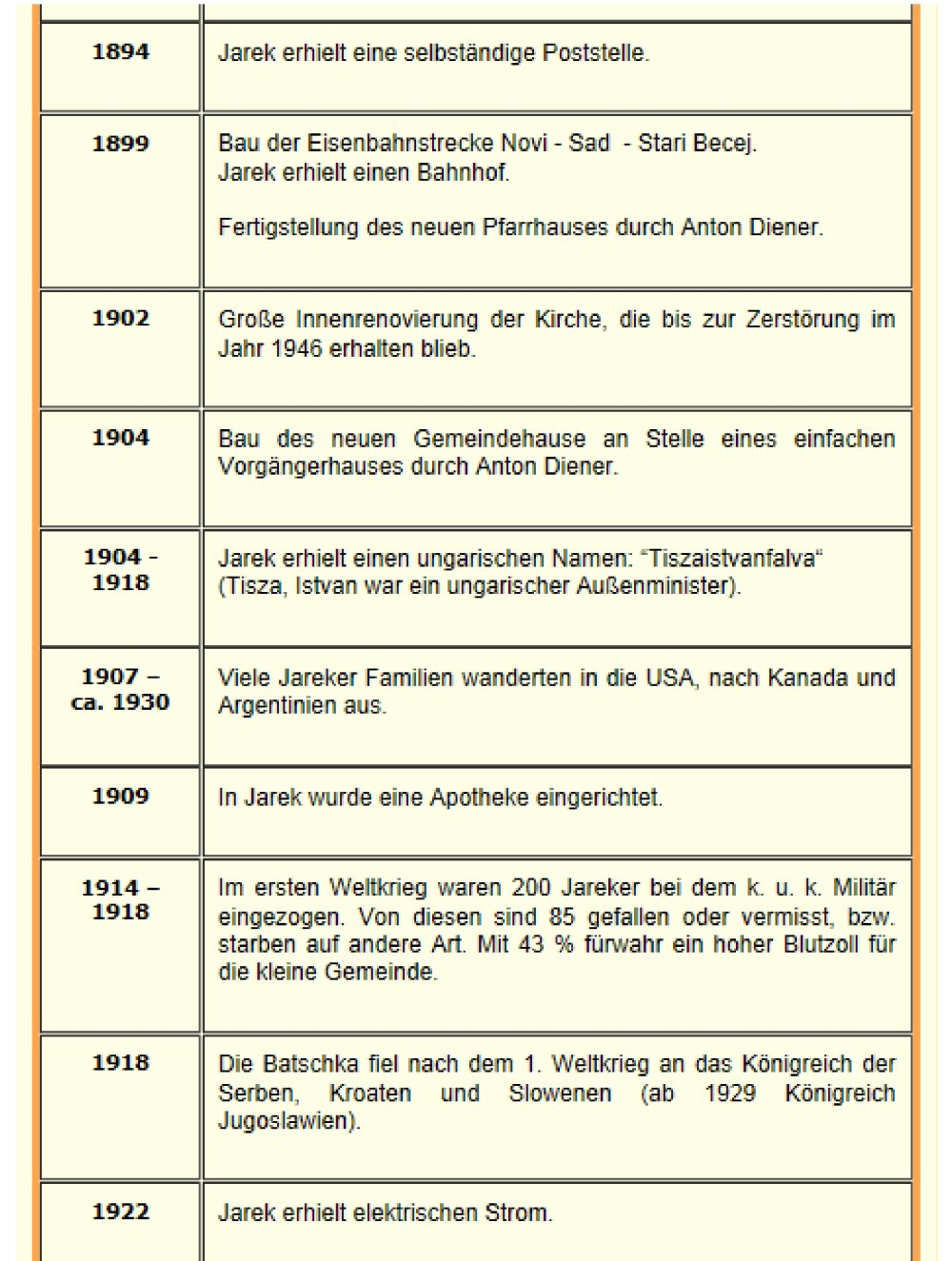 In einer Tabllenübersicht die wesentlichsten Jahreszahlen und Ereignisse von Jarek.