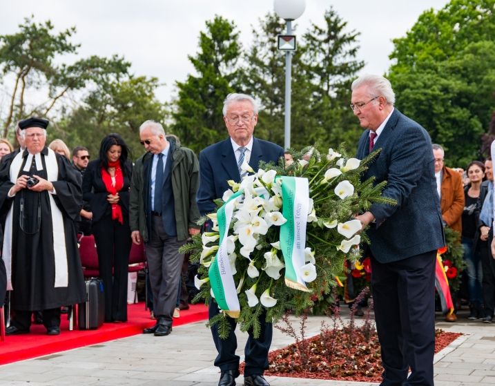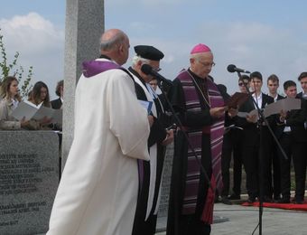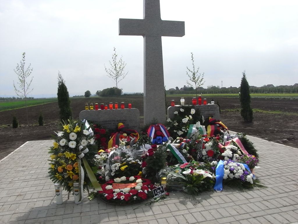 The memorial ceremony for the deceased, all of whom certainly had been buried without being blessed by the church, was conducted by the retired Freiburg Archbishop Dr. Robert Zolitsch from Filippowa and the Lutheran Pastor Jakob Stehle from Mramorak in the Banat, both of whom had survived other camps. The solemn worship service was framed with German hymns, sung by a choir of the high school and a brass choir. The President of the Federal Association of Danube Swabians, Hans Supritz, who had strived for 14 years for the erection of the memorial site, had reconciliatory words. Among other things, he said: “The text on the panels is to remind future generations that various nations lived together in peace until they were separated by national blindness with great sacrifices.” The German Ambassador in Belgrade, Axel Dittmann, emphasized in his speech that Angela Merkel attributes great significance to the memorial and that Germany strongly supports Serbia’s path into the EU. Prime Minister Aleksander Vu?i? said: “Only by the respect and deference of foreign victims will we have the right to also demand respect and deference for our victims.” Subsequently to the ceremony the representatives of the organizations present and the descendants of the victims set down numerous wreaths and bouquets of flowers. All Serbian television stations and print media and also many German media reported extensively about the event. You can watch the entire commemoration on youtube at: