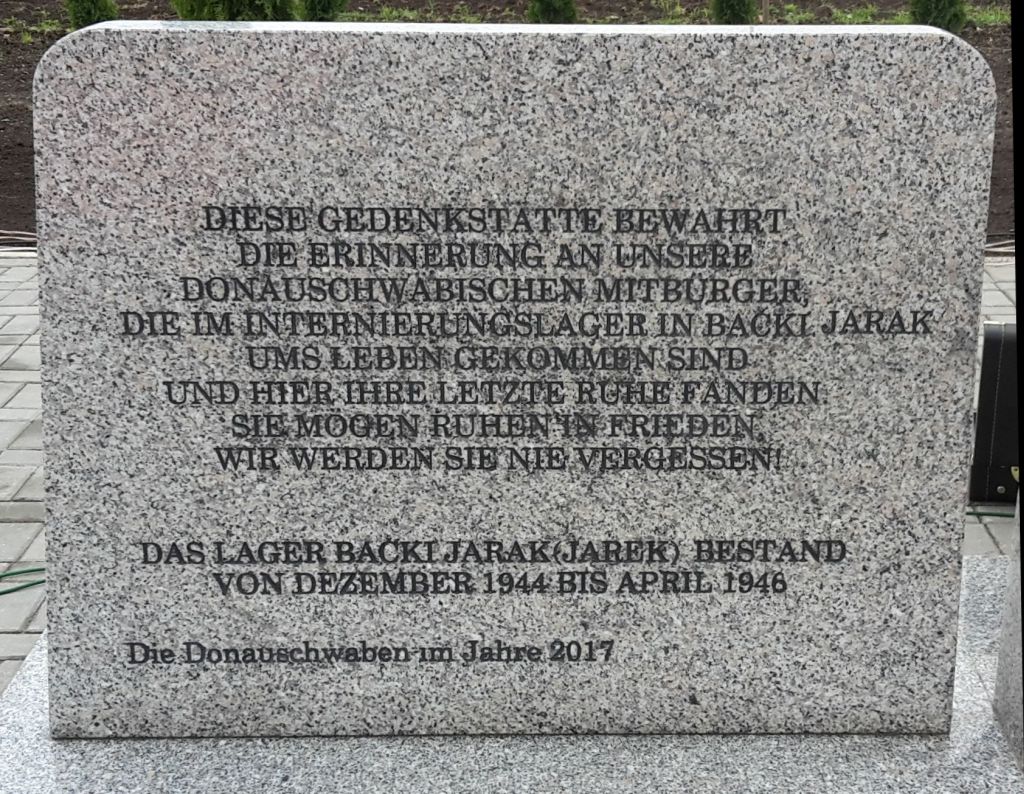 On May 6, 2017 the memorial site near the mass graves in Ba?ki-Jarak (Jarek) was finally dedicated with great public participation in the presence of Prime Minister Aleksander Vu?i?, members of the Vojvodina government, the German ambassador in Serbia and representatives of the Danube Swabian organizations in Serbia and Germany. The Federal Association of Danube Swabians had strived for this for fourteen years, and only after the intervention of German Federal Chancellor Angela Merkel by Serbian Prime Minister Aleksander Vu?i? during the last year permission was suddenly granted.