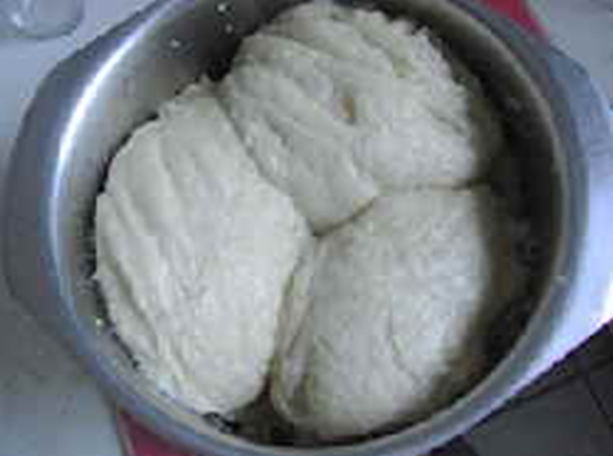 Teig: 400 g Mehl, ½ Würfel Hefe, 1 TL Zucker, ca. 1 Tasse lauwarmes Wasser, Salz, einige Löffel Speiseöl. Aus diesen Zutaten einen geschmeidigen Hefeteig rühren und zu doppelter Teiggröße gehen lassen. Dann 3 - 4 Knödel formen und nochmals gehen lassen.
