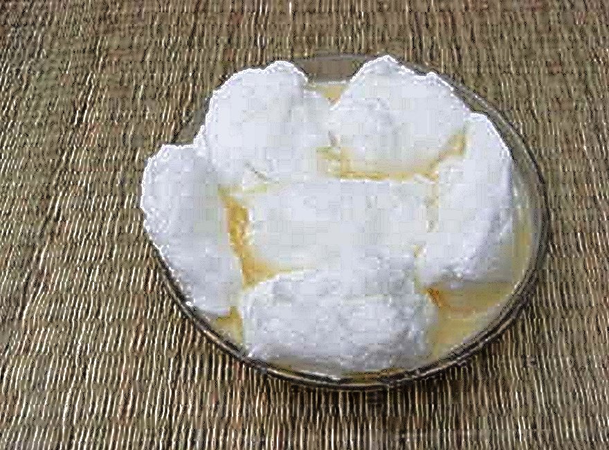 Aus 1 Liter Milch, 250 g Milchreis und Zucker nach Geschmack einen Reisbrei kochen und auskühlen lassen. (Vorsicht, brennt leicht an!) Dann 6 Eigelb mit 1 Vanillezucker und 1 - 2 EL Zucker schaumig rühren und unter die Reismasse heben. Diese Masse in eine Auflaufform gießen und so lange backen, bis sich eine feste Schicht gebildet hat. Dann einige Löffel gute Erdbeer- oder Aprikosenmarmelade aufstreichen. Aus den 6 Eiweiß mit 2 EL Zucker einen steifen Eischnee schlagen, 2 - 3 EL Marmelade unterheben und diese Baiser- Masse auf die Marmeladenschicht löffelweise bergartig aufstreichen. Dabei achten, dass der Eischnee bis an den Rand der Form reicht, sonst schrumpft er. Den Auflauf noch eine Weile im Backofen bei Mittelhitze weiter backen, bis die Spitzen leicht gebräunt sind. (Wenn die Marmelade sehr süß ist, wenig Zucker nehmen.)