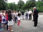 Am Mittwochmorgen ging es dann weiter zur Patengemeinde der Jareker, nach Beuren. Am Jarek Platz hatte sich schon eine Gruppe von Leuten zum Empfang eingefunden, darunter der Bürgermeister von Beuren, Erich Hartmann, der Vorsitzende des OA Jarek, Michel Rettinger, Hans Supritz, einige Mitglieder des OA Jarek, sowie einige Jareker aus der Umgebung und Stefan Barth, der als Dolmetscher eigens aus Erlangen angereist war.