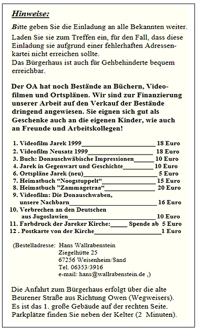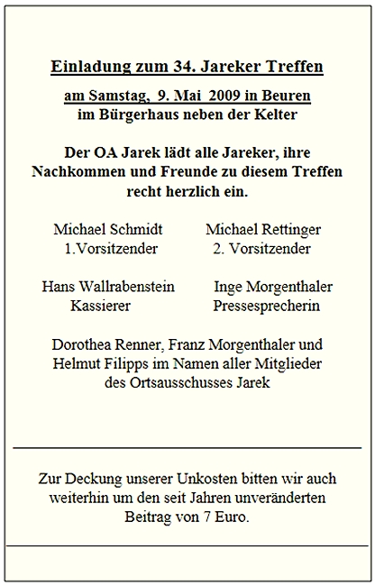 Einladung zum 34. Jareker Treffen 2009 in Beuren