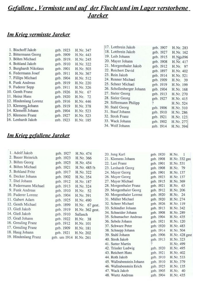 – Gefallene und vermisste Jareker