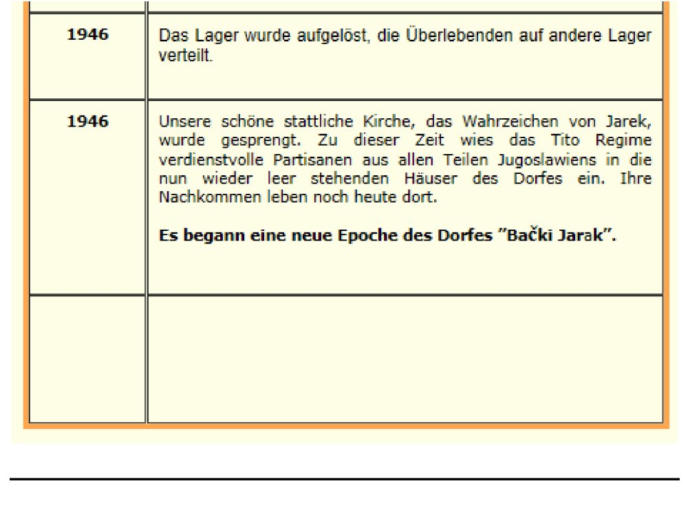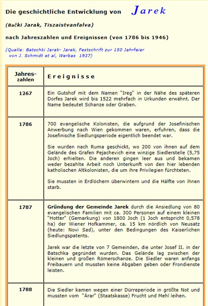 In einer Tabllenübersicht die wesentlichsten Jahreszahlen und Ereignisse von Jarek.