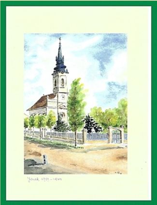 The first house of God in the village of Jarek was erected in 1791 by the so-called “Kameral” authority and did not differ in any way from the other houses in the village. It consisted of air-dried bricks and was 10 klafters long and 3.5 klafters wide. It was situated in the place of' the later churchyard at the crossing of the Hauptgasse (Main Lane) and the Kreuzgasse (Cross Lane). Beside it a simple bell tower for the Josef’s bell, a present form Emperor Josef, was built.