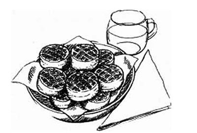 Glaze: Mix the juice of one lemon with 1 tablespoon cream and as much sugar until a spreadable mixture develops. Spread this glaze on the baked biscuit and let dry. Then cut out with a sharp round cookie cutter of about 8 cm. (3”) diameter. They taste very good with tea and stay succulent for a long time.