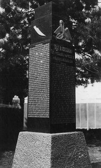 The celebration began on Saturday morning at 5 o'clock with trumpet fanfares from the steeple of the Lutheran church; at 9 o'clock followed the divine service in the church. The sermon on Saturday was given by Pastor Franz Morgenthaler. This solemn festive worship service was framed by the singing of two choirs under the direction of the cantor, Teacher Wilhelm Heinz. After that the celebration proceeded to the unveiling of the new ancestors' memorial, which had been erected in the church yard to the left of the entrance to the church. On front of this memorial of black marble the names of 80 immigrant families of 1787 were listed and on the back were the names of the straggler families. At the upper edge the components of the Jarek coat-of-arms were engraved: the pelican, which nourishes its young with its blood, as well as the coulter and the plowshare, the symbols for the fertile fields of the Jarek farmers.