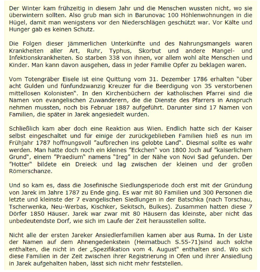 Beinahe das "Ende" noch vor der Ansiedlung für die "Jareker" Siedlerfamilien.